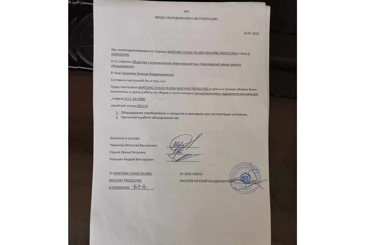 超力卷板機制造企業一批卷板機設備出口俄羅斯, 順利完成調試并成功交付,獲得了客戶的高度贊譽?。